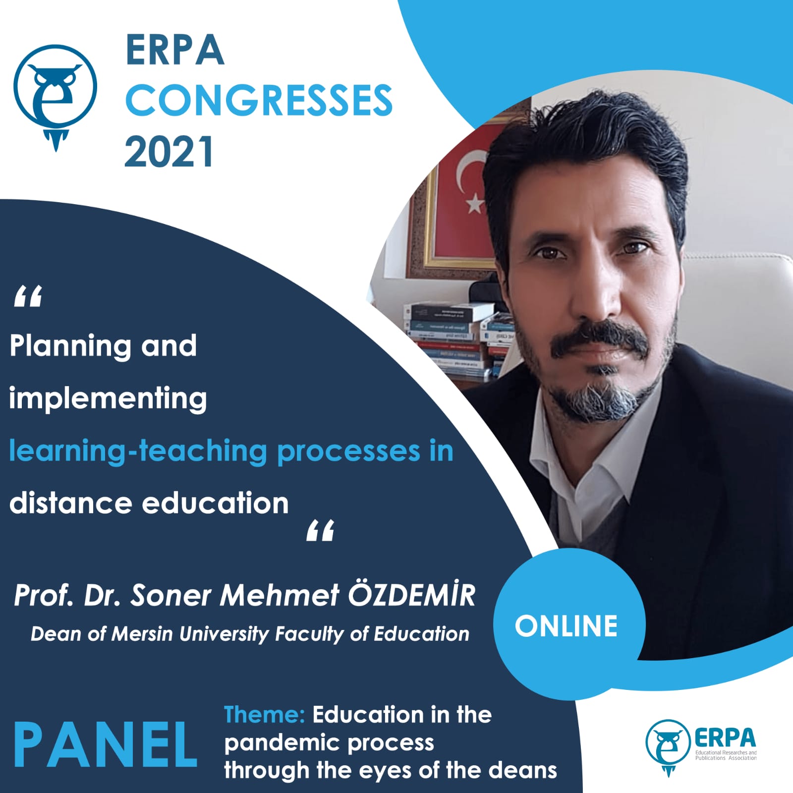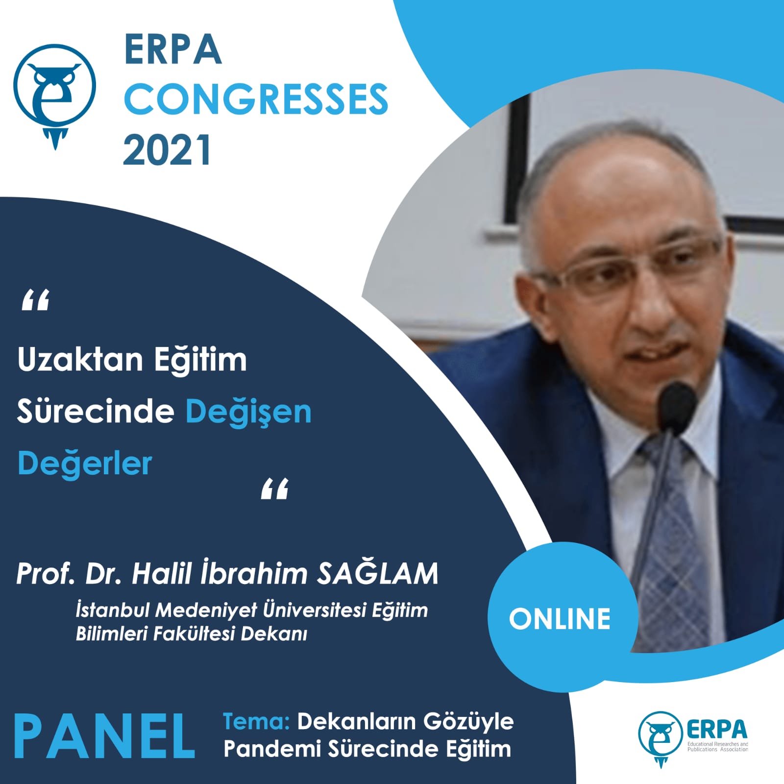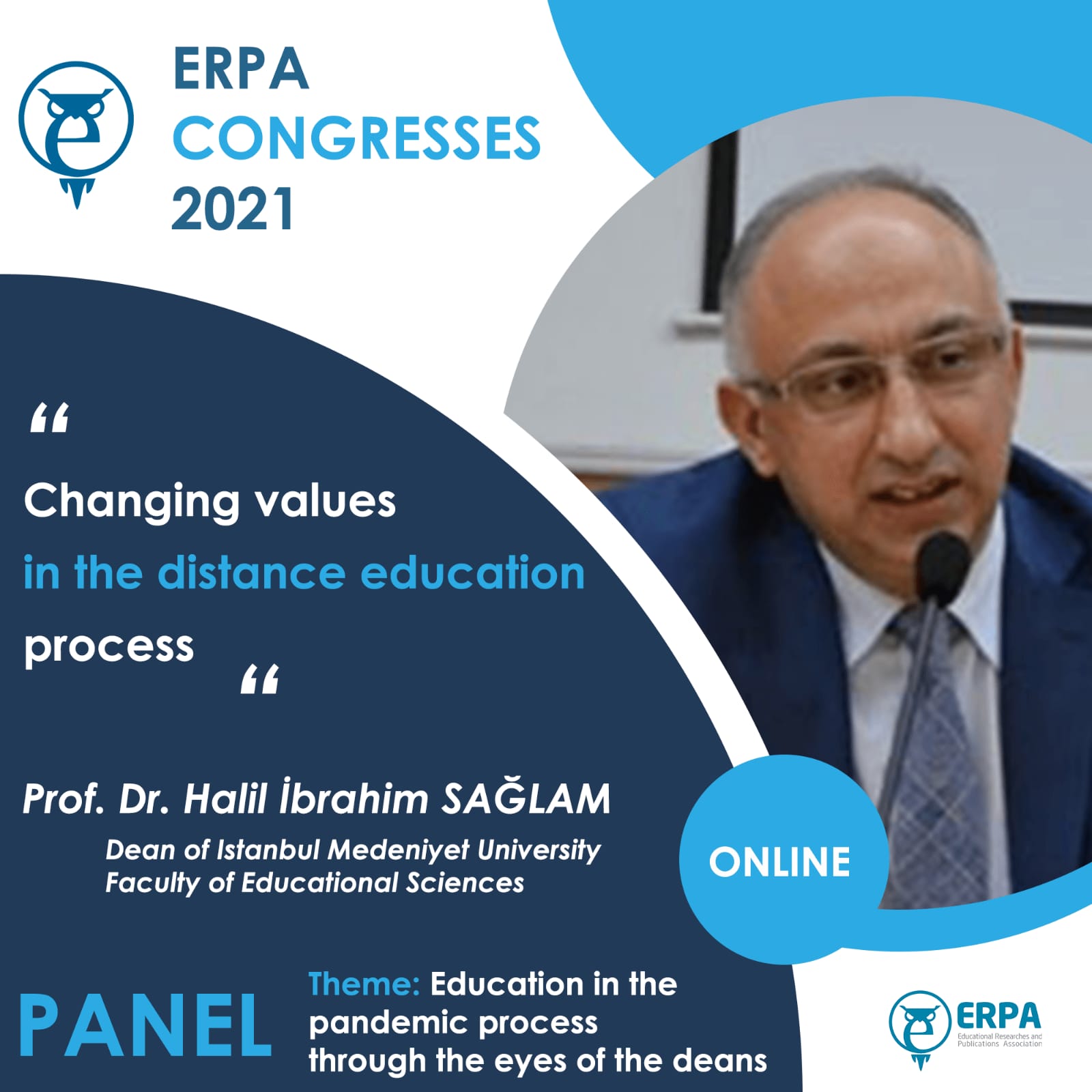 It is with immense pleasure that I welcome you to the ERPA International Congresses on Education 2021 that will be held online from 3 to 5 June 2021. It is an honor for us to invite you to ERPA International Congresses on Education 2021 in which your invaluable contributions will help us to have a fruitful organization. I hope that you will have pleasant memories of this Congress which will be a chance for you to meet colleagues, have the opportunity to discuss your work, and establish the ground for new collaborations and joint efforts.