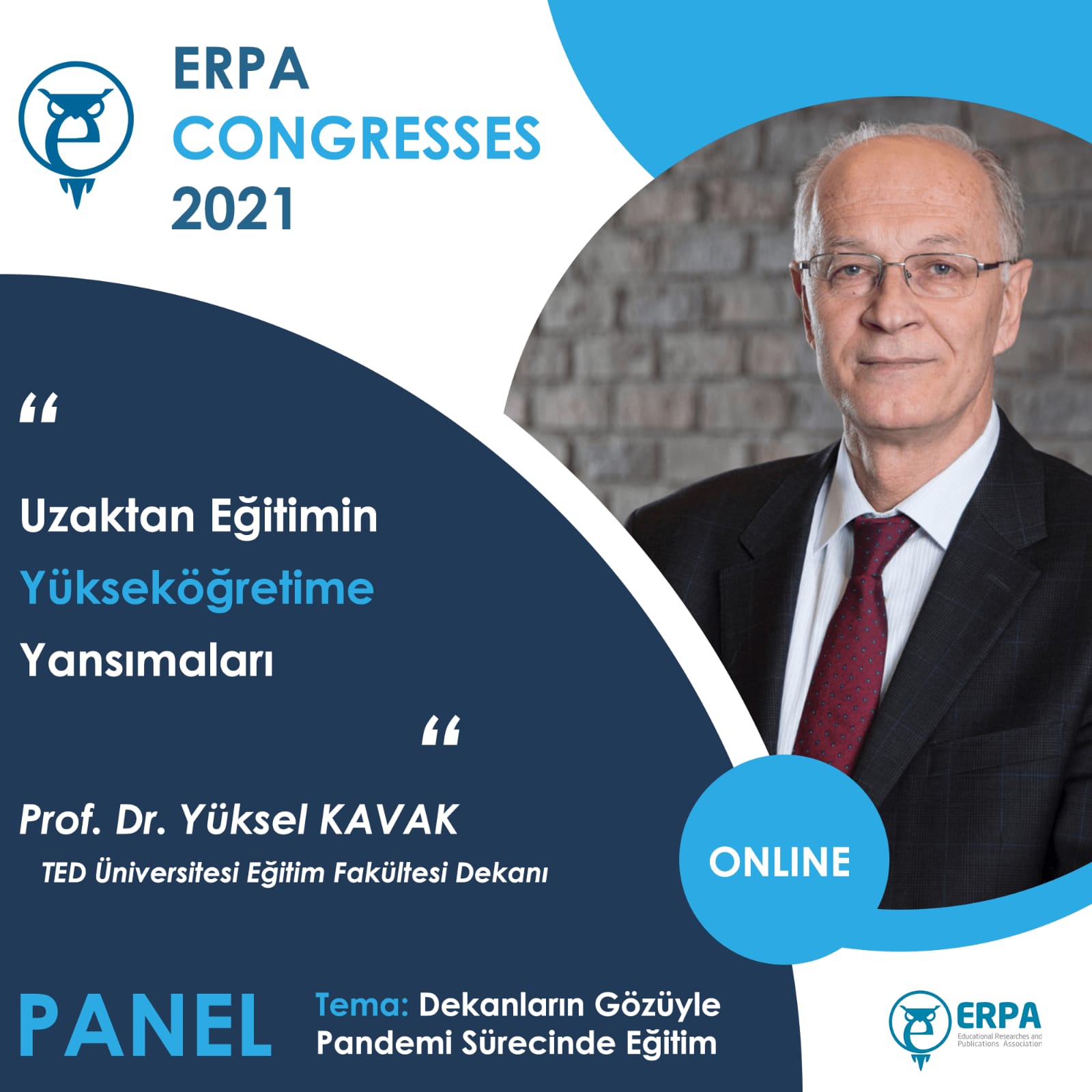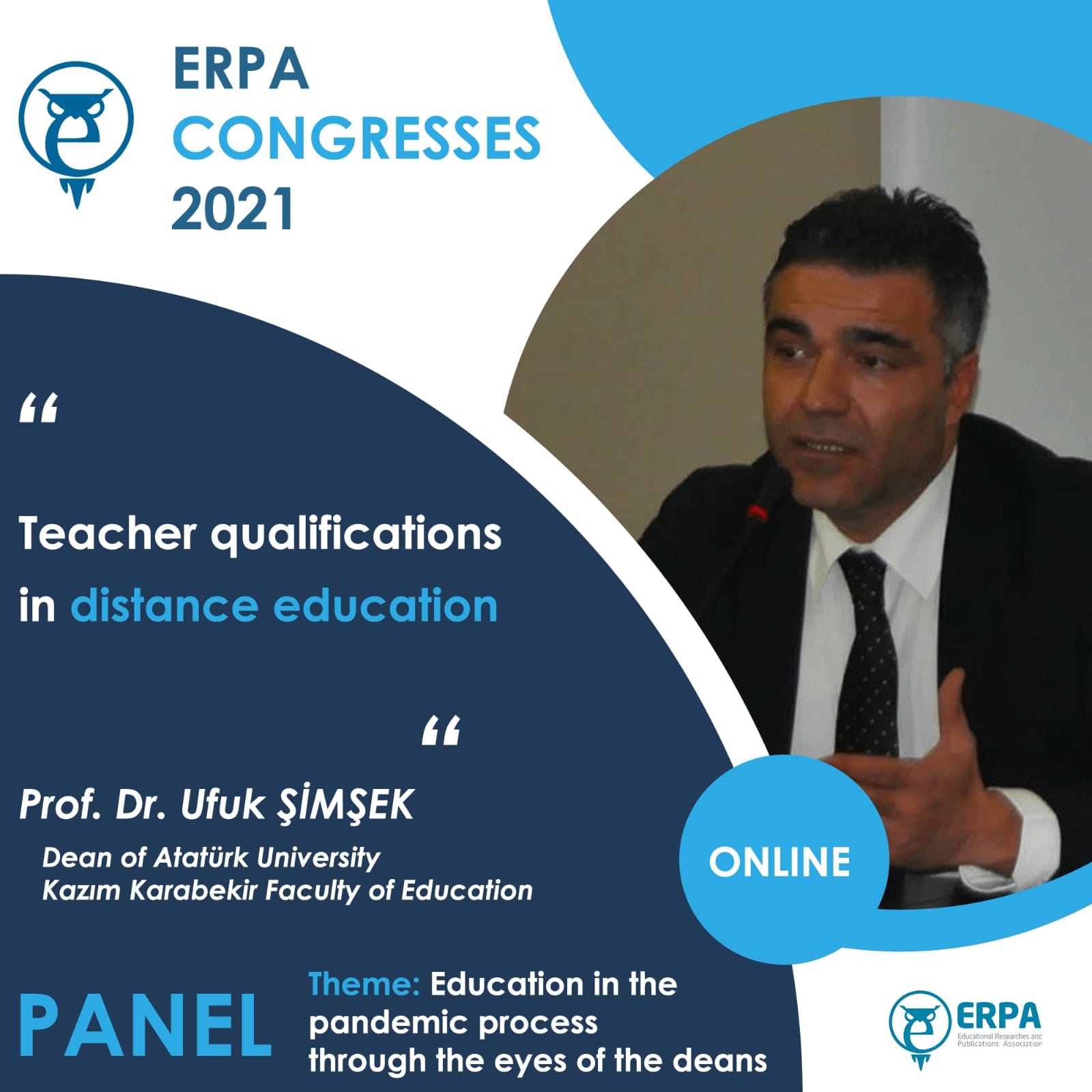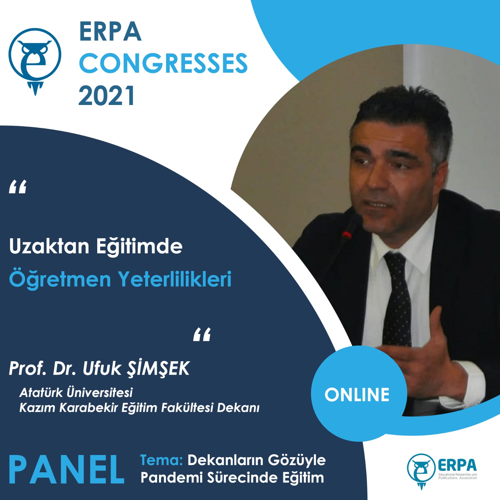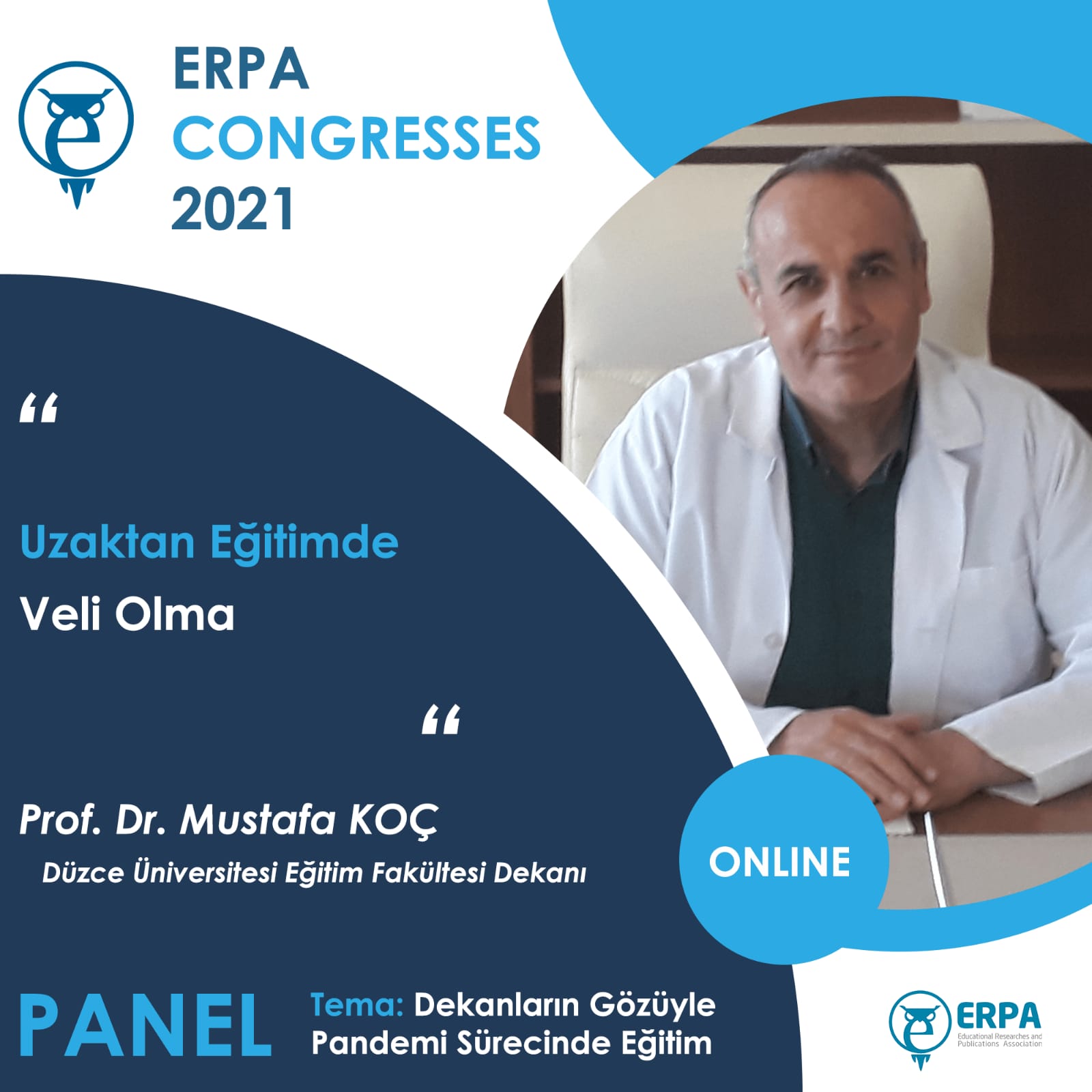 It is with immense pleasure that I welcome you to the ERPA International Congresses on Education 2021 that will be held online from 3 to 5 June 2021. It is an honor for us to invite you to ERPA International Congresses on Education 2021 in which your invaluable contributions will help us to have a fruitful organization. I hope that you will have pleasant memories of this Congress which will be a chance for you to meet colleagues, have the opportunity to discuss your work, and establish the ground for new collaborations and joint efforts.